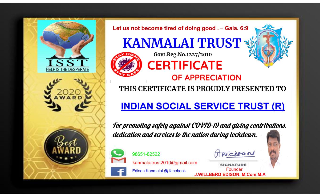 Indian Social Service Trust For the Best Social Service Activity 2019,